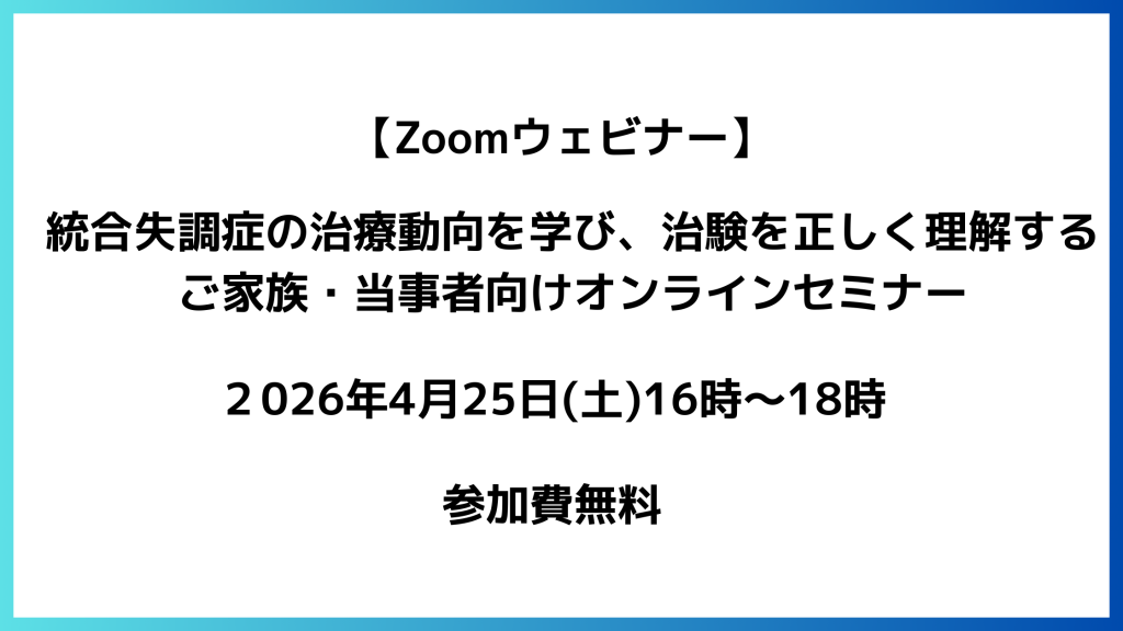 【4/25(土)ウェビナー開催】統合失調症の治療とその選択肢をご家族・当事者と一緒に考えるオンラインセミナー